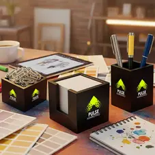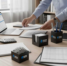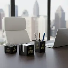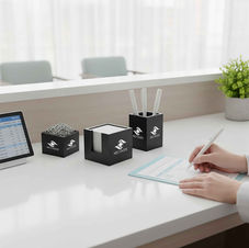 O kit escritório personalizado que leva a sofisticação da sua marca para a mesa do cliente.